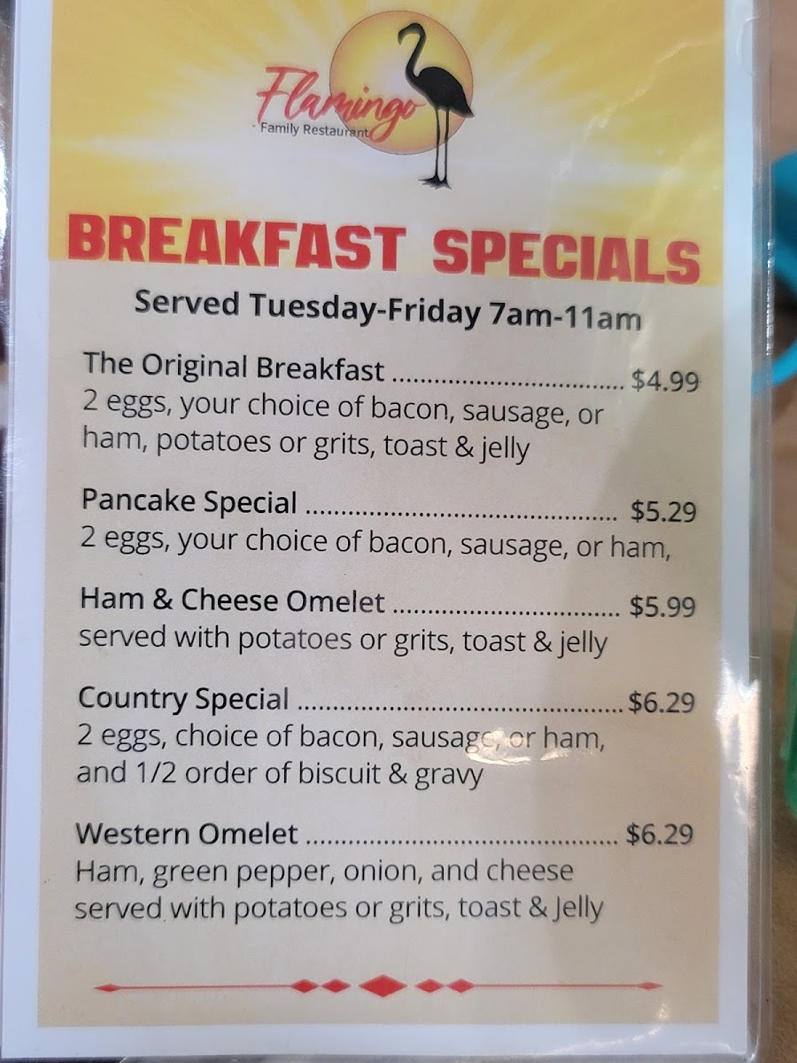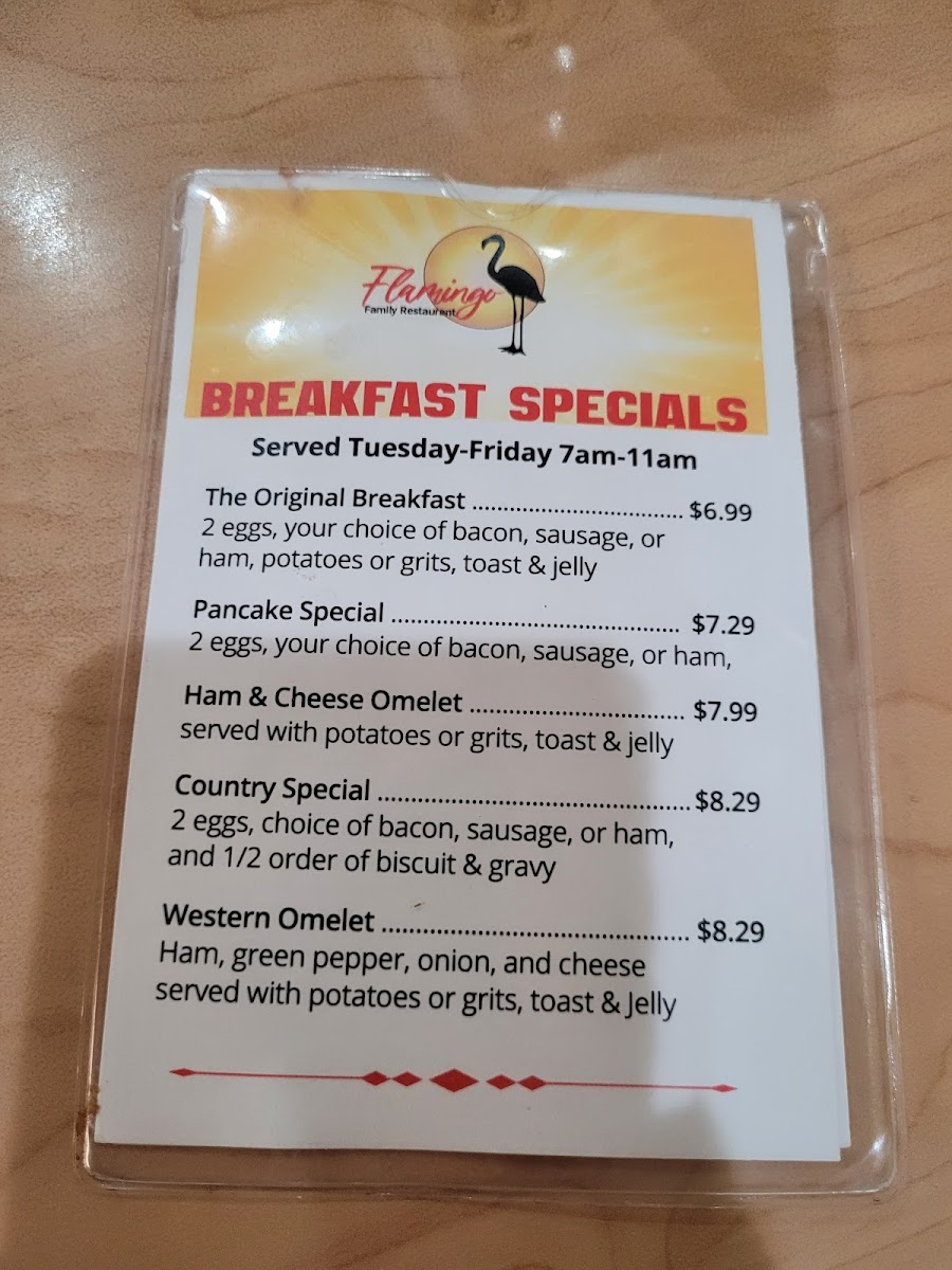 Flamingo Family Restaurant Menu